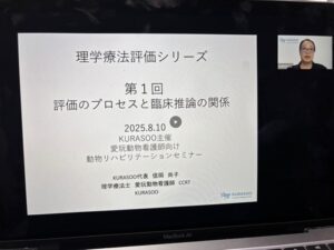 今回は水戸メディカルカレッジの加藤先生をお招きし、活きた理学療法士教育に基づき、問題点を想起する上での考え方やプロセス、ICFとの関連性についてご講義いただきます。そして基本的な動物の臨床例をKURASOO代表の信岡からお話します。11月の第4回「動作観察の実践」に向け、ぜひ共に学んでみましょう。
